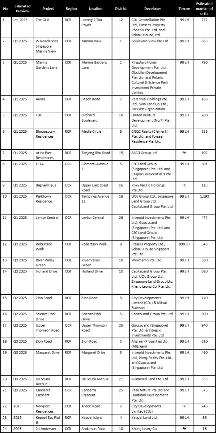Based on estimations, 2025 could see up to 24 new private home launches and three EC launches. In total, new private home launches will yield 11,000 new homes, while the EC launches will see some 2,030 units added to the market.