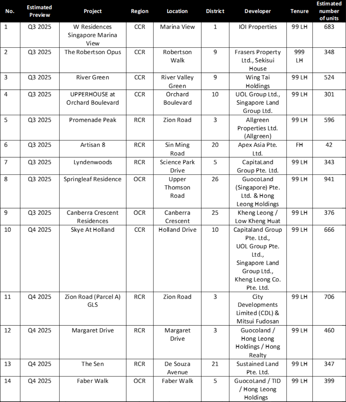 Collectively, 2H 2025 will see 15 new private home launches and 1 EC that will bring a total of 7,332 homes.