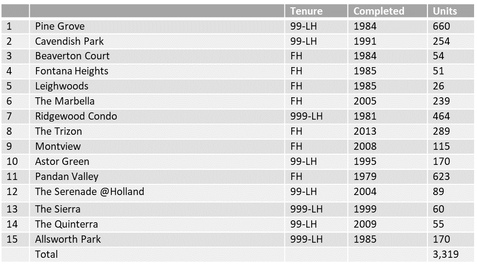 Pine Grove has been an established private housing estate for almost 50 years. Many of the condos there are getting old – in fact only 4 out of the 15 condos in the Pine Grove area have been launched after 2000.