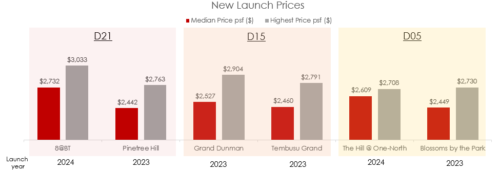 The closest comparison on the market currently would be 8@BT, also within D21 in the RCR. Since its launch in late September, 8@BT has transacted at a median price of $2,737psf, compared to Pinetree Hill which has transacted at a median price of $2,453psf since its launch.