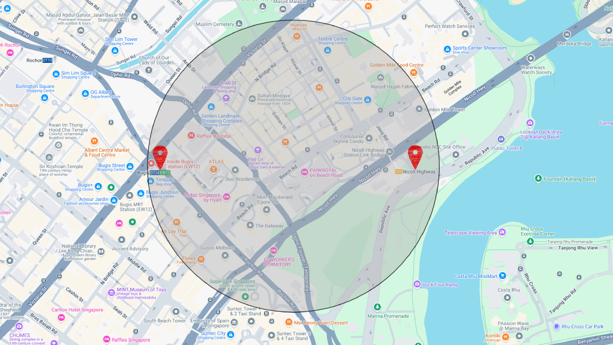 Beyond car travel, Beach Road is also served by Singapore’s extensive MRT network. With both Nicoll Highway and Bugis station located within a 500m radius from the centre of Beach Road, commuters can easily make their way down to prominent stops on the Circle, East-West, and Downtown Lines in 10 minutes or less.