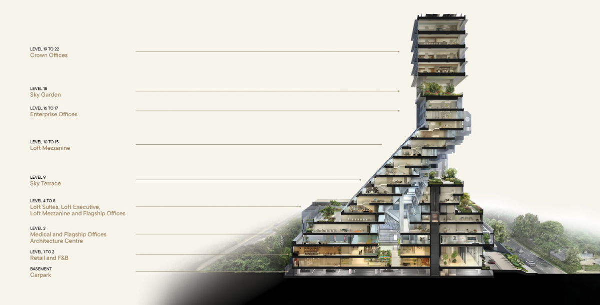 Echoing its original intent as a prime mixed-use development in the 1970s, the redeveloped Golden Mile Complex will see it reimagined with 156 office units, bringing its legacy full circle. A new four-storey extension will also be built to house prestigious Crown Offices with panoramic views of the sea and the city.