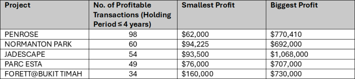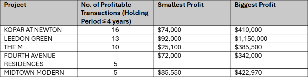 Table 1: CCR condominium projects with the greatest number of profitable transactions that have holding periods of no more than 4 years