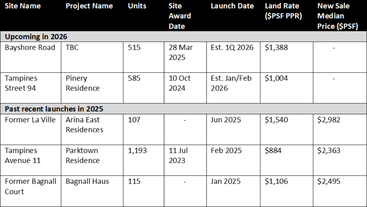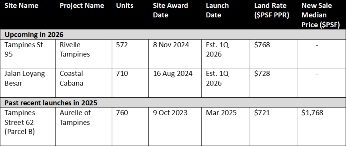 Based on successfully-tendered Government Land Sales (GLS) sites in 2025, the East will see only four launches next year, bringing a total of 1,100 private home and 1,320 EC units to market.