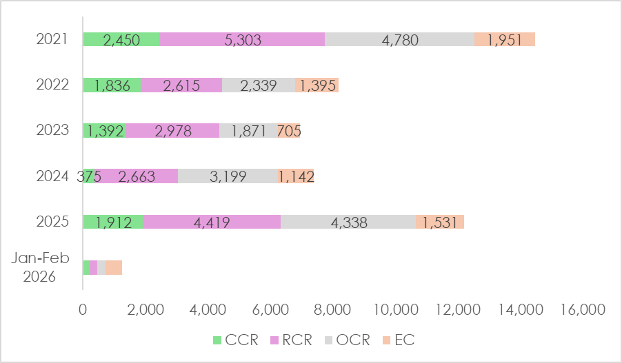 This comes as more units launched in 2025 attracted homebuyers’ interest. In particular, launches at locations that either experienced a pause in new supply or welcomed their inaugural project saw strong pent-up demand. The Core Central Region (CCR) also experienced a recovery, with over 4,600 units launched, about 75% more than in 2024. As a result, new home transactions exceeded 10,000 units for the first time since 2021.