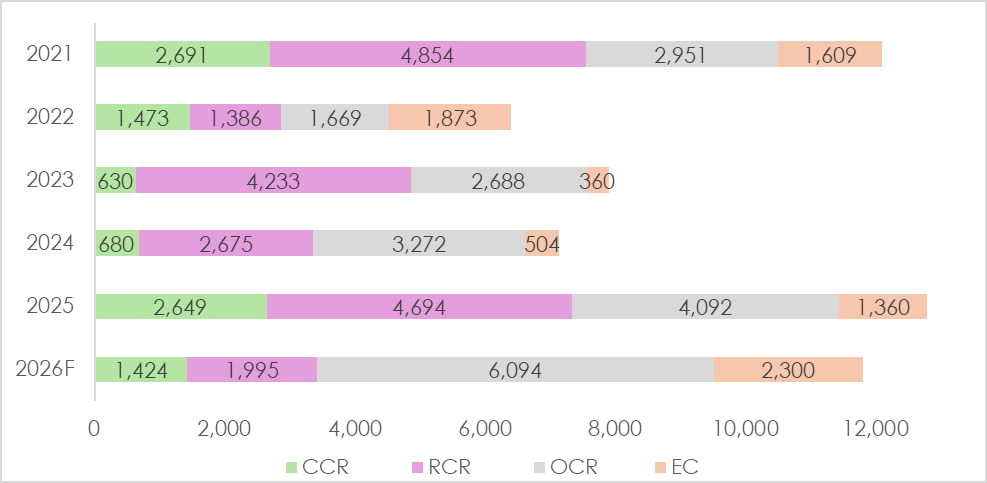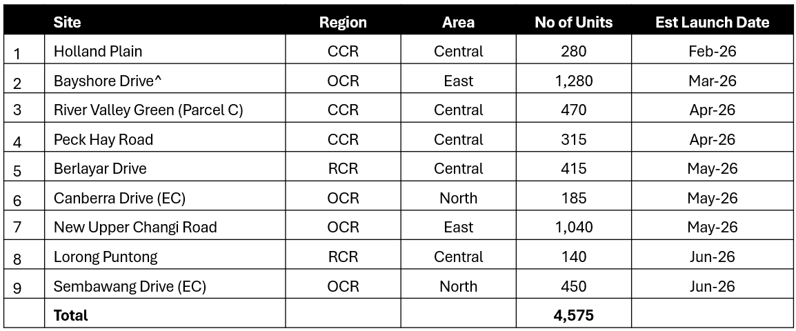 We expect around 11,800 units (including ECs) to be launched in 2026. Based on GLS sites that have been awarded, are pending award, or are scheduled for tender, at least 9,000 additional units are in the pipeline. In June this year, URA will announce the 2H 2026 Confirmed List sites, which are likely to offer greater variety and options for buyers going forward.