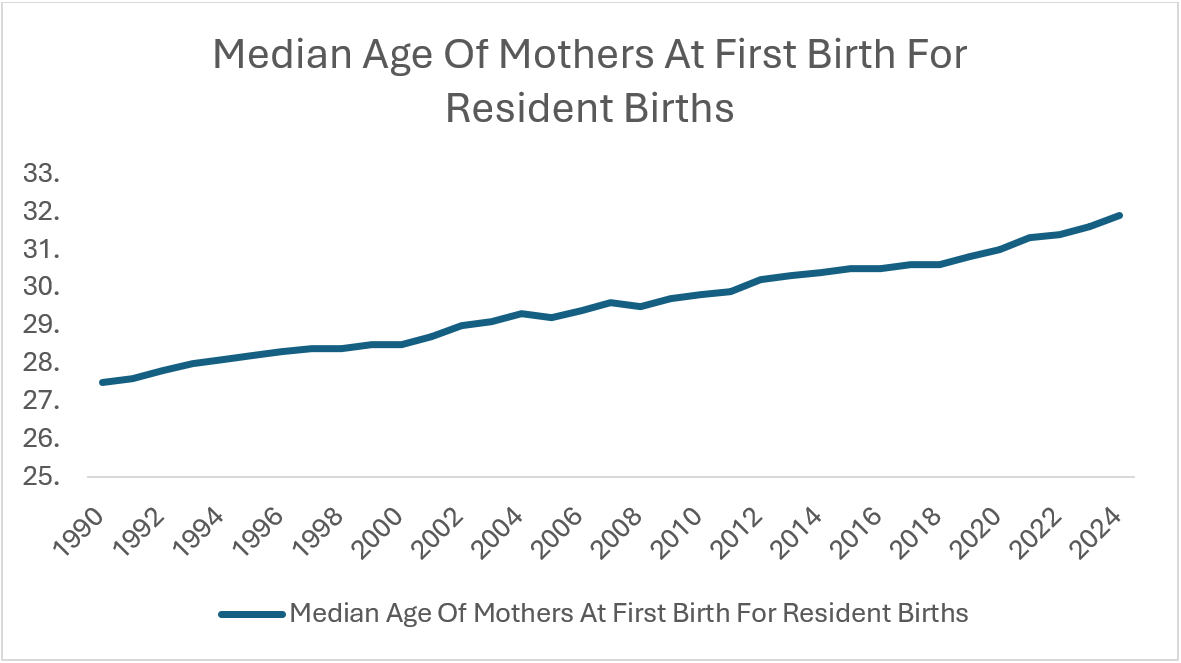 Chart 2: Median Age of Mothers at First Birth for Resident Births, Singapore