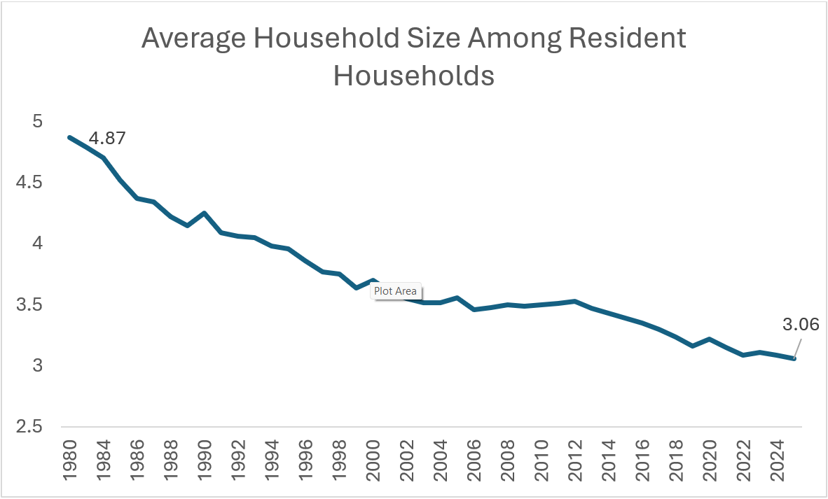 Chart 3: Average Household Size Among Resident Households in Singapore