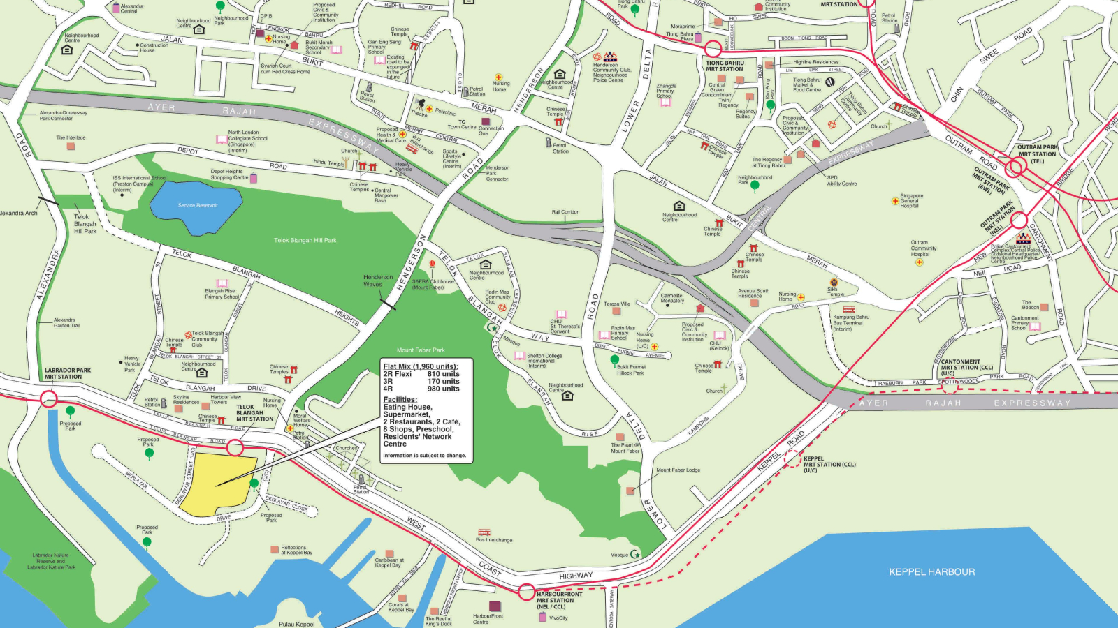This project will comprise 1,960 units, including 2-room flexi (810 units), 3-room (170 units), and 4-room (980 units) layouts. Facilities to support the larger resident population and a new precinct will feature an eating house, supermarket, restaurants, cafés, shops, a preschool, and a Residents Network Centre.