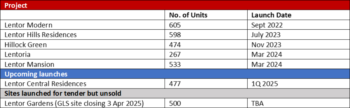 Moreover, as of 13 February 2025, 2,318 units or 93.6% of the 2,477 homes launched for sale across the five Lentor projects have already been taken up. Hence, with only a limited number of units left, Lentor’s market has sufficient room for future launches, which will also likely be sustained by the strong buyer demand and interest seen thus far.