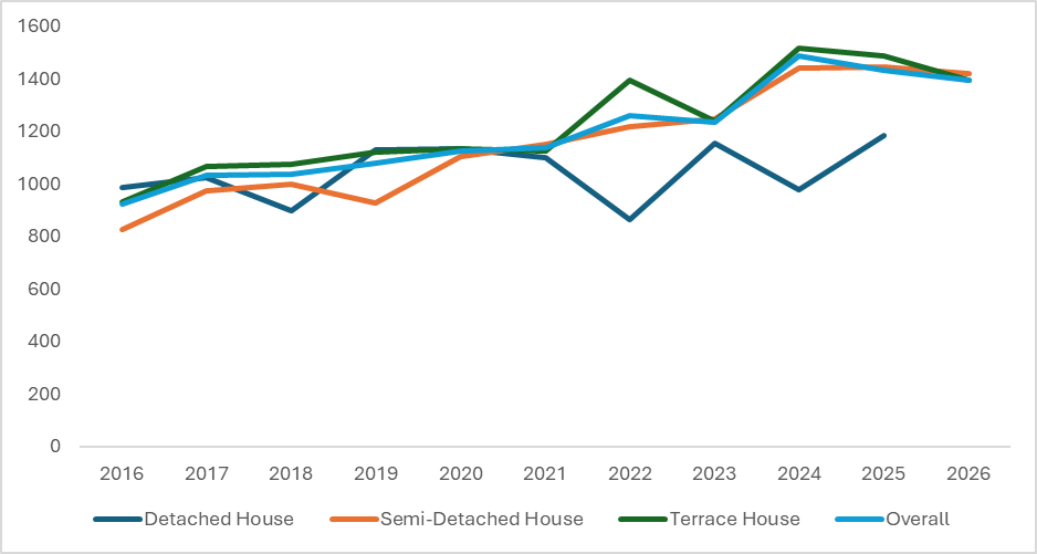The same overall upward trend is evident when we analyse the transactions for landed homes around Bayshore in postal sector 46, which includes homes in Lucky Heights and parts of Siglap/Upper East Coast.