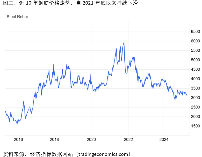 如果中国决定将其过剩产能转向其他国家,并以更低的价格进行出口,可能会导致亚太地区面临通缩压力。具体到建筑行业,由于中国房地产市场的放缓,国内需求减弱,钢筋价格已有所下滑。此外,美国对钢材进口加征25%关税,进一步打击了钢材需求,尤其是削弱了中国钢铁的出口。