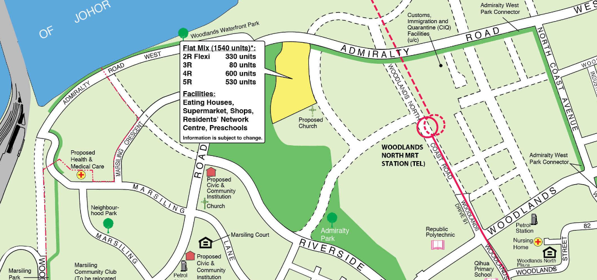 This BTO project, which happens to be the largest among the February bunch, is located in Woodlands North, in the Marsiling area, and near the causeway.