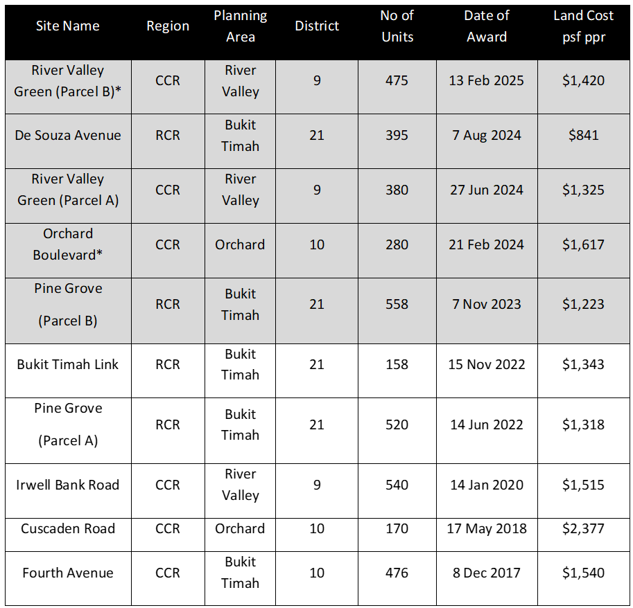 District 10 has only seen few GLS sites made available in recent years. The most recent site awarded was at Orchard Boulevard, which was sold for $1,617 psf ppr. This bid is considerably lower than previous site at Cuscaden Road, as it is subjected to the new Harmonisation of GFA rule while also zoned as ‘Residential with Commercial at 1st Storey’.
