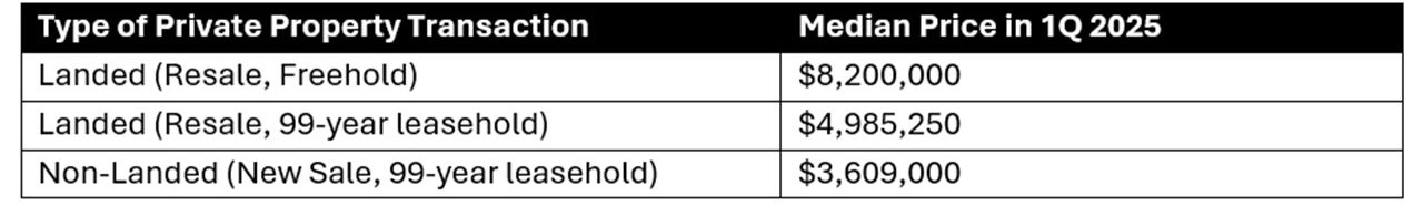 Table 4: 1Q 2025 Median Prices for Landed Resale and Non-Landed New Private Homes in District 10