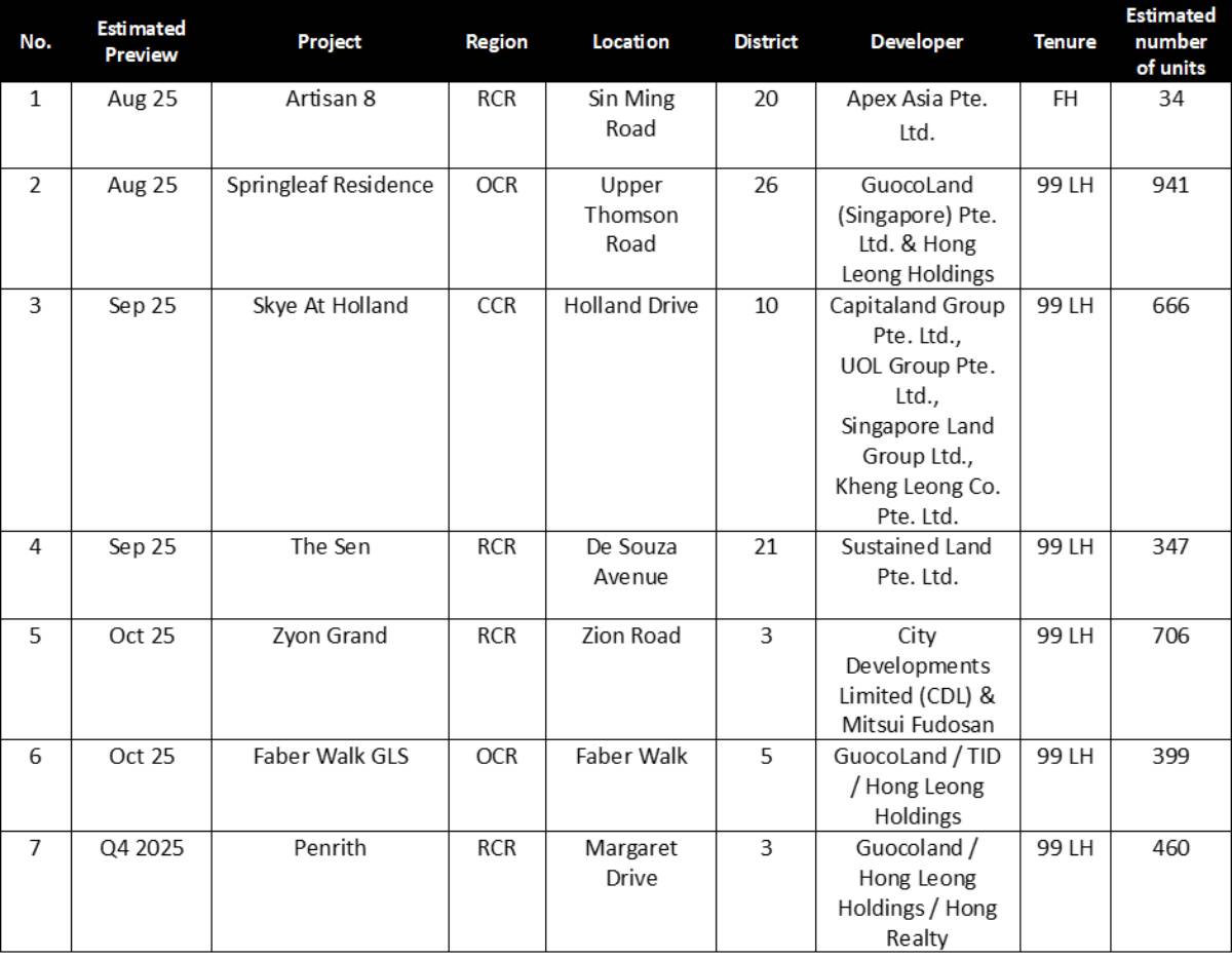 For the remainder of 2025, seven new launches are slated, adding 3,553 units to the market. Notably, Skye At Holland - the only CCR launch this year – and The Sen.
