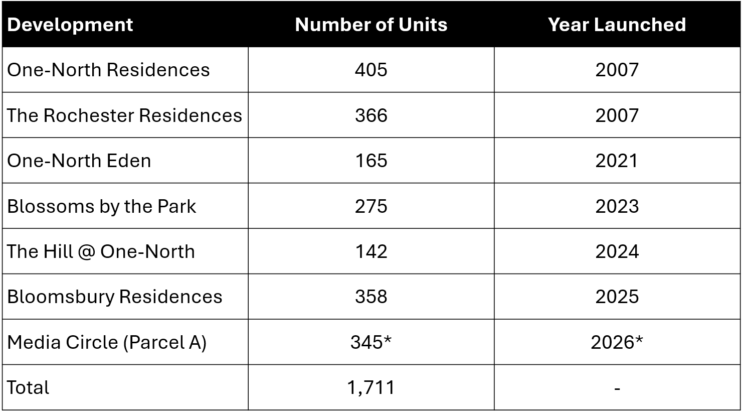 This complements the existing private developments located within one-north. Presently, there are 1,711 units, with another 345 units expected to launch in 2026.