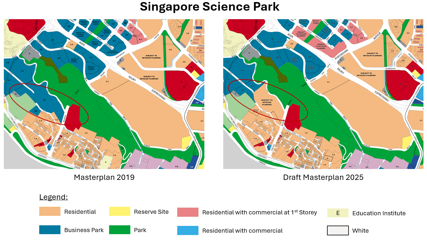 Similarly, the Singapore Science Park has a business park site adjacent to Galen, which has also been rezoned from 'Business Park' to 'Residential'.