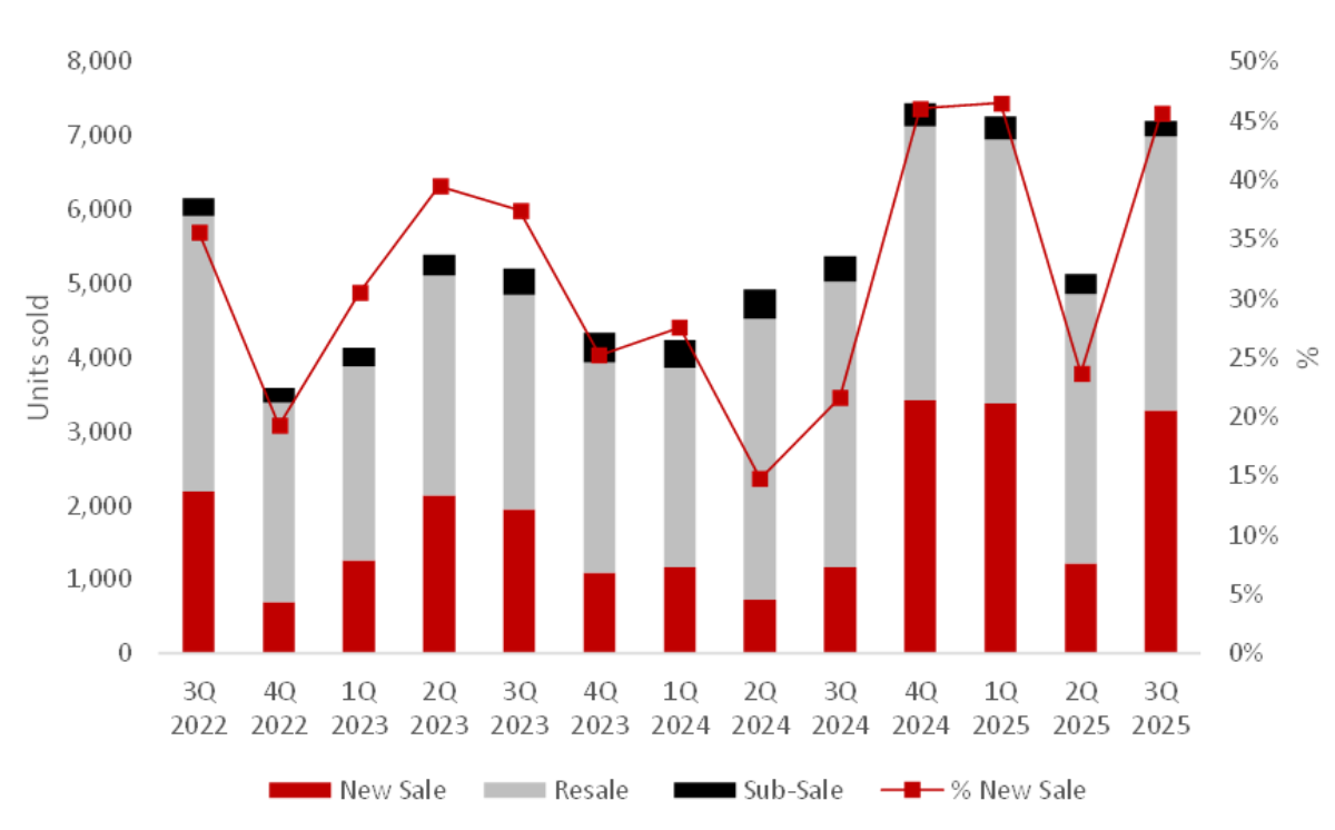“In total, developers sold 3,288 new homes in 3Q 2025, representing a 171.3% increase over the 1,212 units last quarter. Developers also launched more homes, totalling 4,191 units, up from 1,520 units in 2Q 2025. These increases coincide with firm buyer interest amid a robust pipeline of new launches in 3Q 2025.”