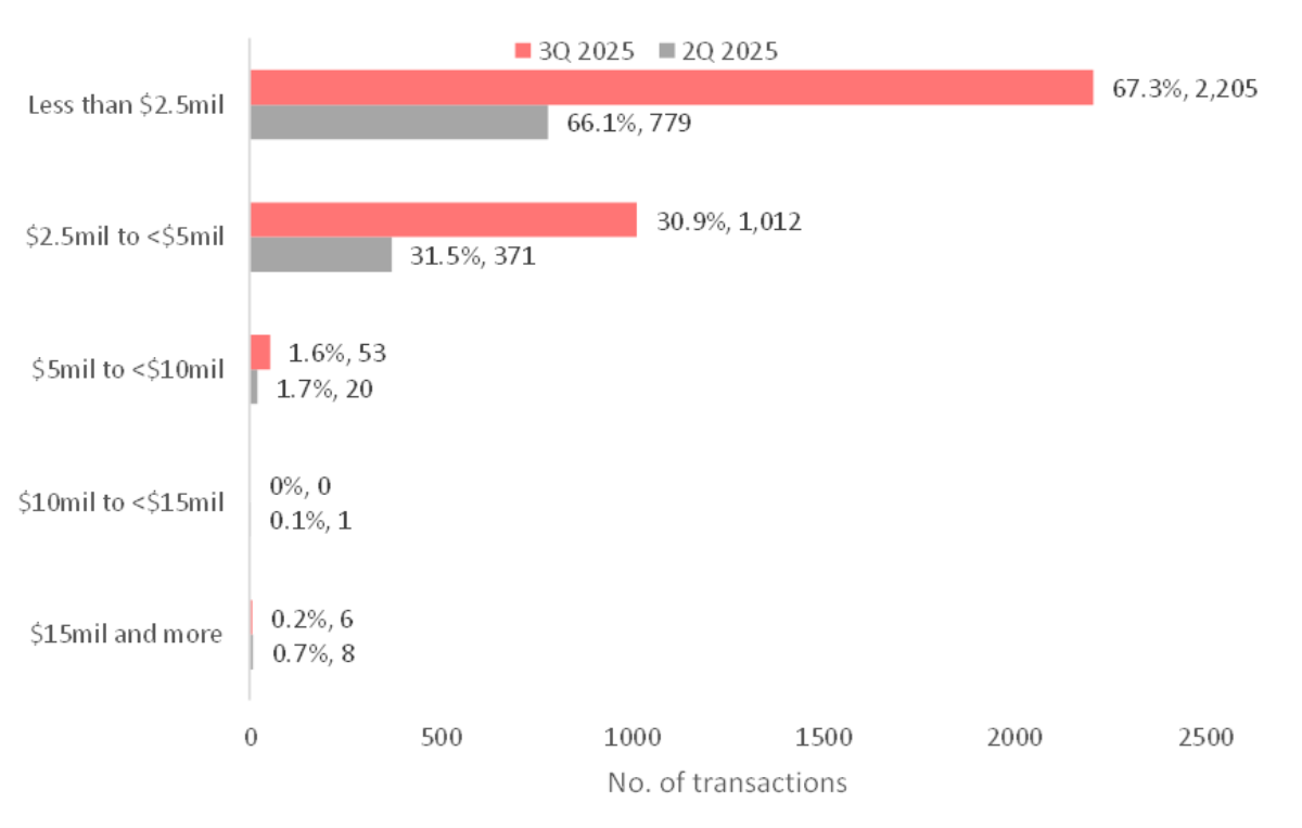 “In the resale segment, 3,881 transactions were recorded in 3Q 2025, representing a further 6.4% q-o-q uptick from the 3,647 private homes sold in 2Q 2025. This points towards the resale segment’s continued resilience, despite the challenges posed by competing new launches and seasonal factors, like the Hungry Ghost Festival and September school holidays.”