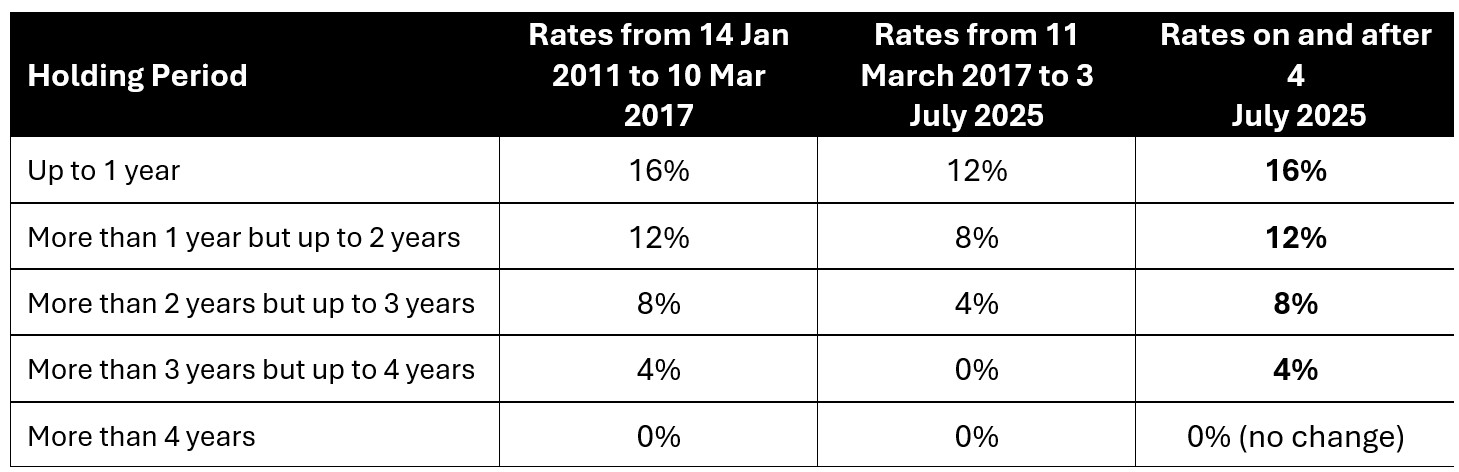 Singapore, 4 July 2025 – The Government has announced two changes to the Seller’s Stamp Duty (SSD) for residential properties: