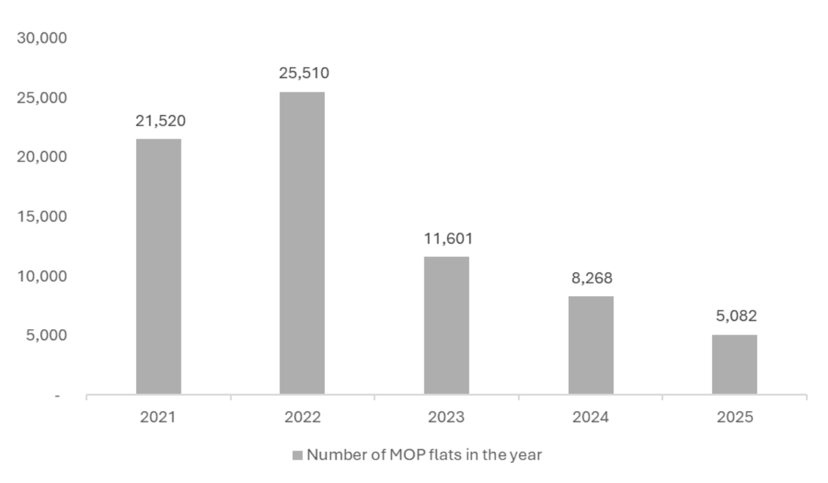今年将有5082个组屋单位达到MOP,比去年减少38.5%,这将使转售市场的价格承压。