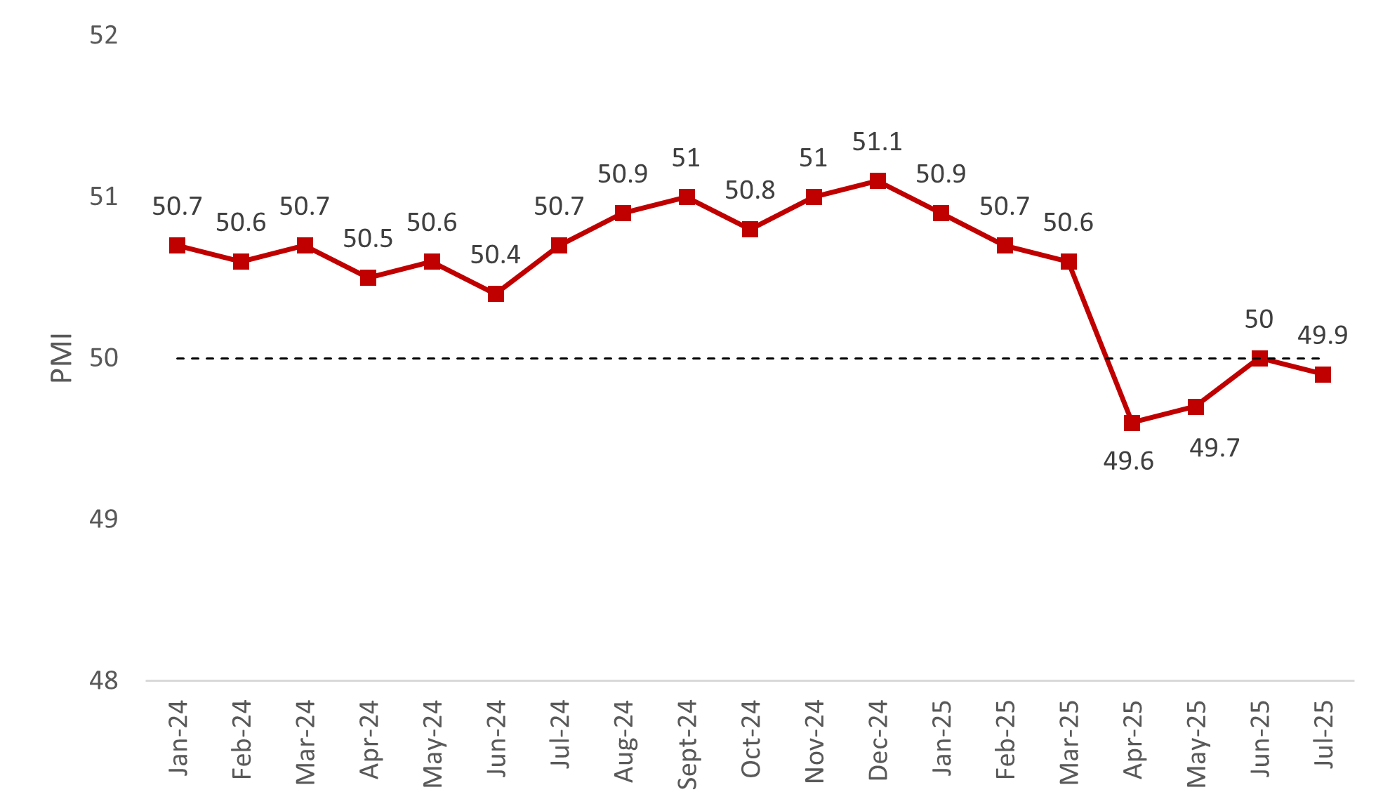 *The PMI reading with a score above 50 indicates that the manufacturing economy is generally expanding and that the economy is generally declining when the reading falls below 50, and a score of 50 indicates no change from the previous month.
