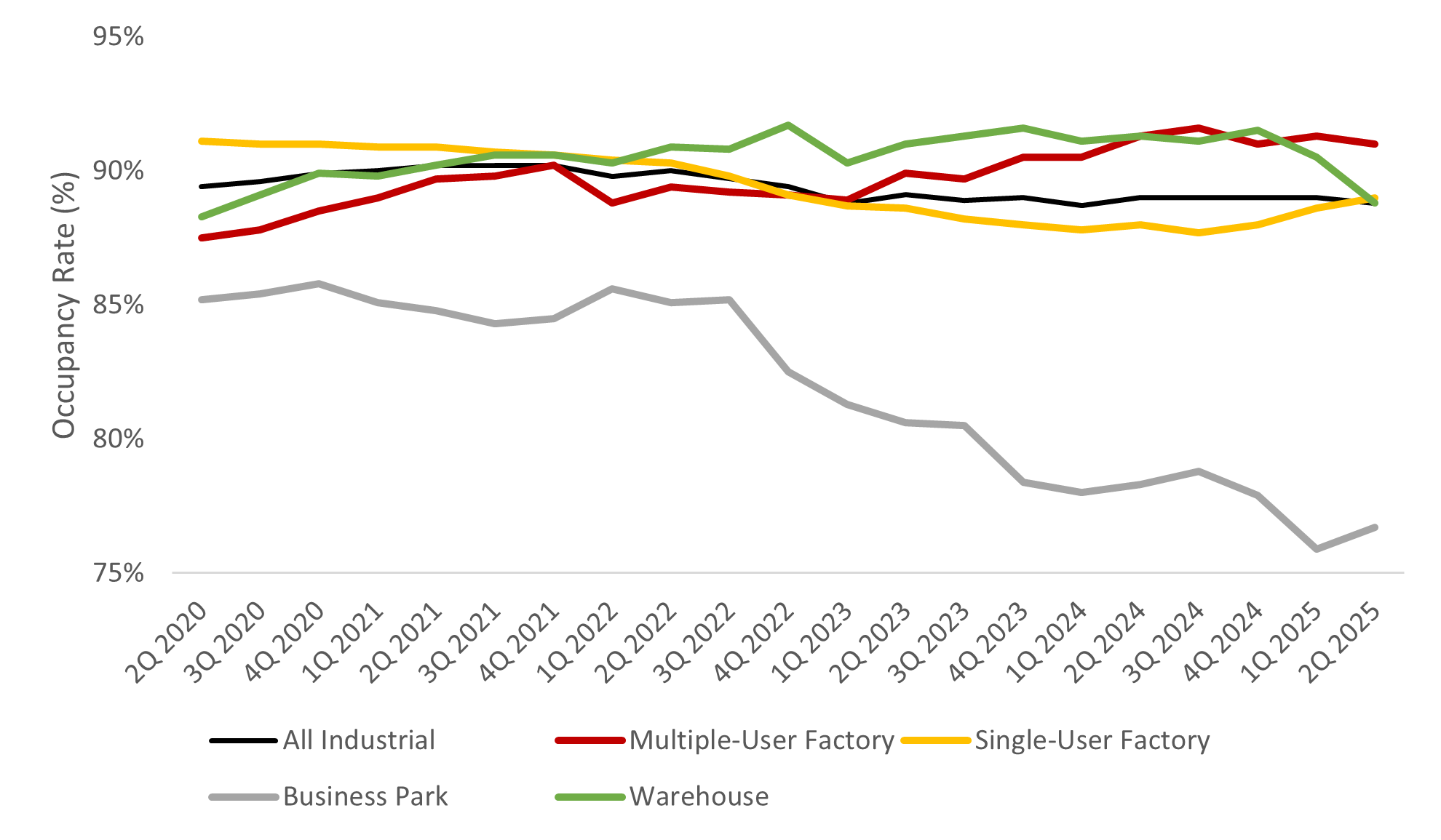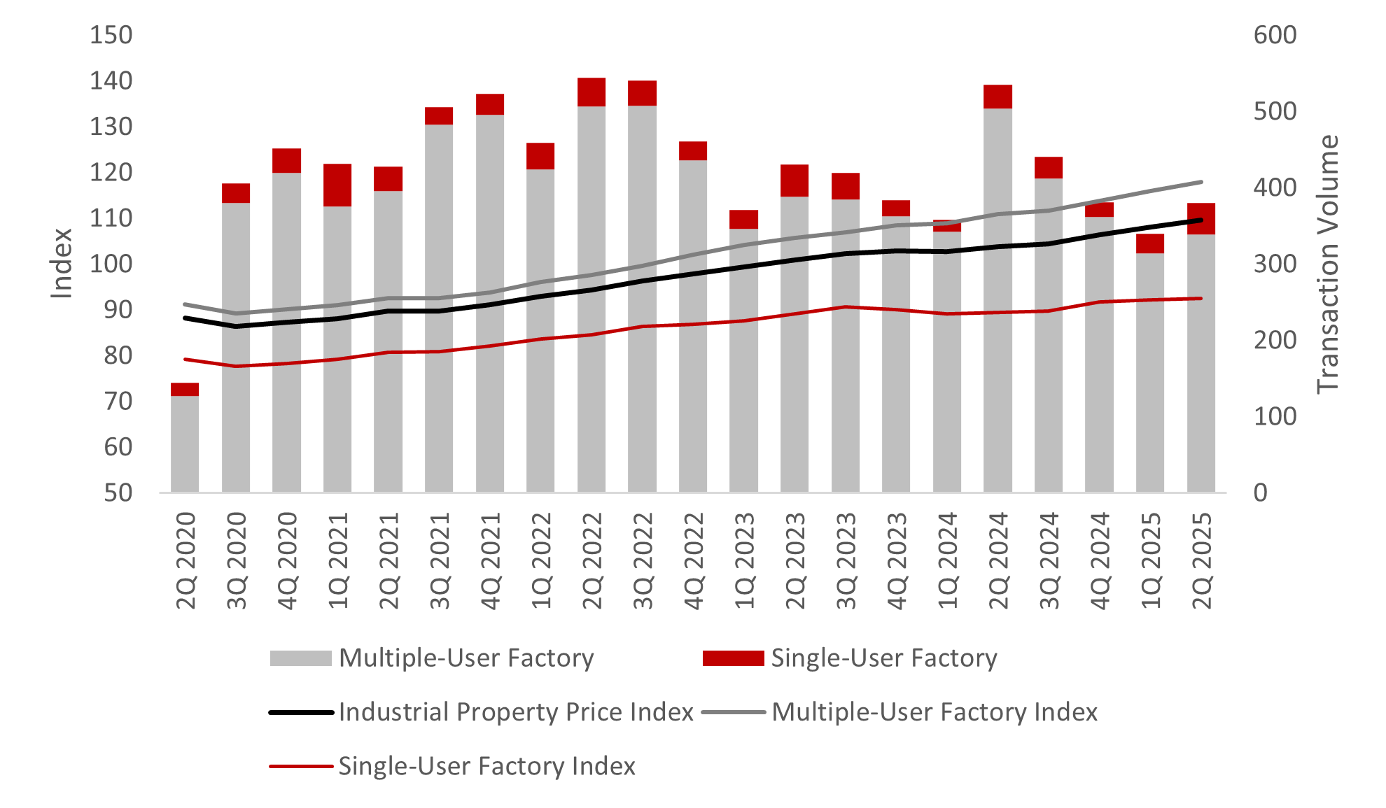 Multiple-user factory transaction volume rose by 7.4% q-o-q, marking a rebound after three consecutive quarters of decline. Meanwhile, single-user factory transactions continued their strong growth momentum in 2Q 2025, increasing by 36.6%, following a 36.8% rise in 1Q 2025.