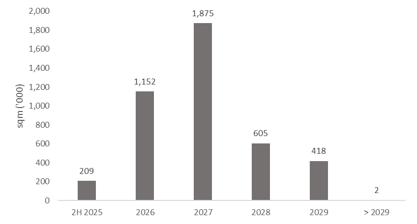 Looking ahead to 4Q 2025, another 12 new industrial developments are scheduled for completion, adding 180,600 sqm of industrial space to the market. Notable developments include Bulim Square by JTC Corporation (74,780 sqm) and a single-user industrial project at Pasir Ris Industrial Drive 1 (37,520 sqm).