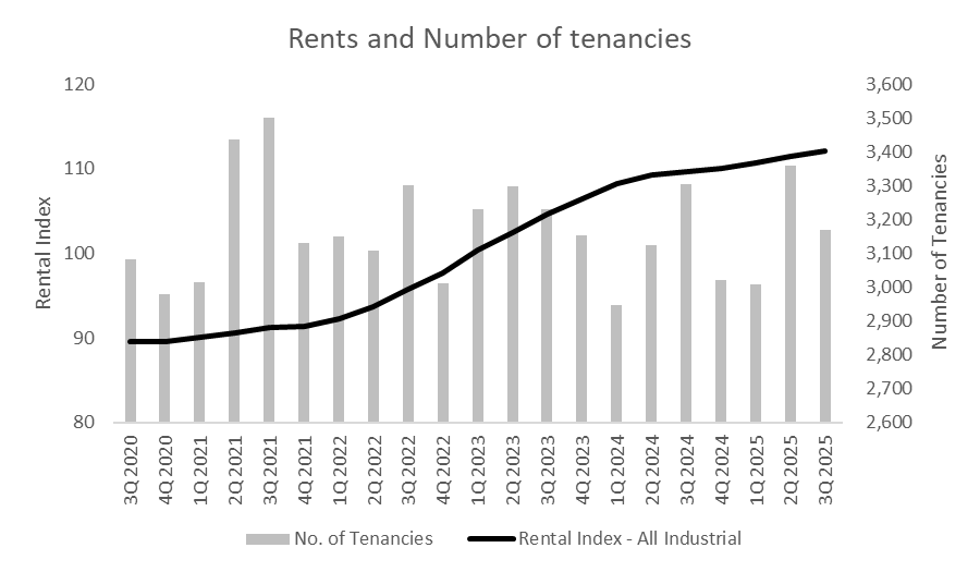 Collectively, the Industrial Property Price Index and Rental Index increased by 3.5% and 1.7% respectively over the first three quarters of 2025. We are on course to meet our earlier forecast – a rise of between 3% to 5% in industrial prices, and an increase of between 2% to 4% in industrial rents.