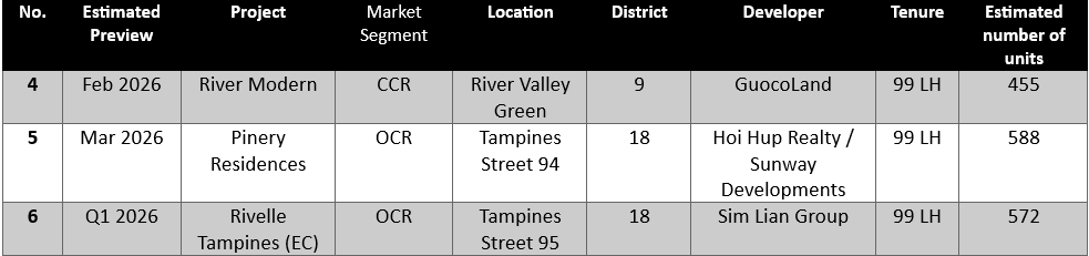 In 2026, the private residential market is expected to remain resilient, with moderate price growth supported by strong owner-occupier demand and ongoing right-sizing trends. Buyers can look forward to a pipeline of 19 private residential projects, and 5 EC launches this year.
