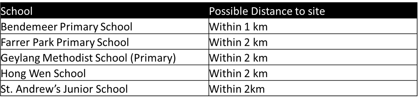 Table 2: Schools possibly within 2km of the Telok Blangah Site