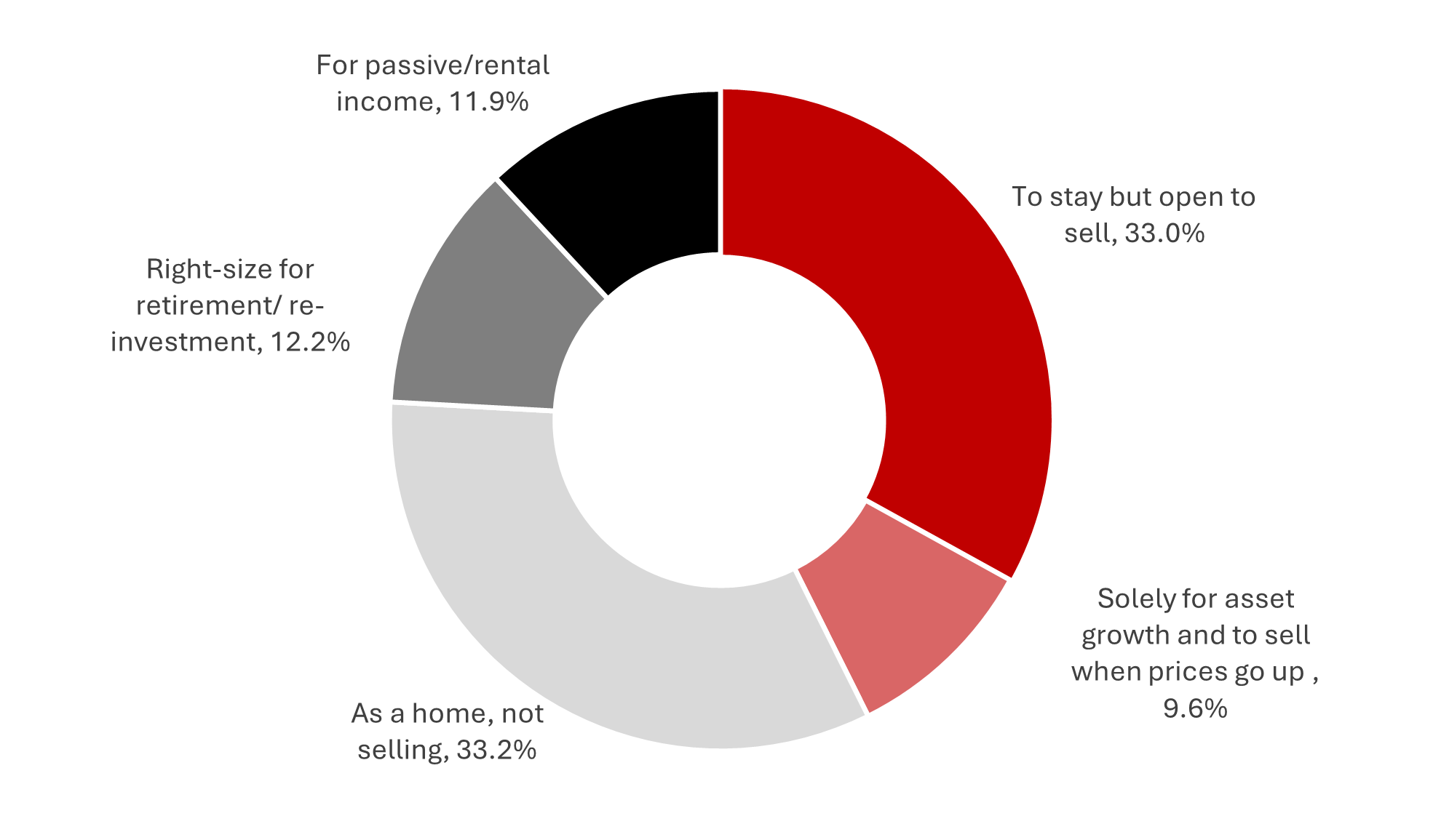 An overwhelming 92% of respondents expressed satisfaction with their current homes. Despite the strong satisfaction levels, about 43% said they would consider selling if the right price came along, while one in three has no plans to sell.