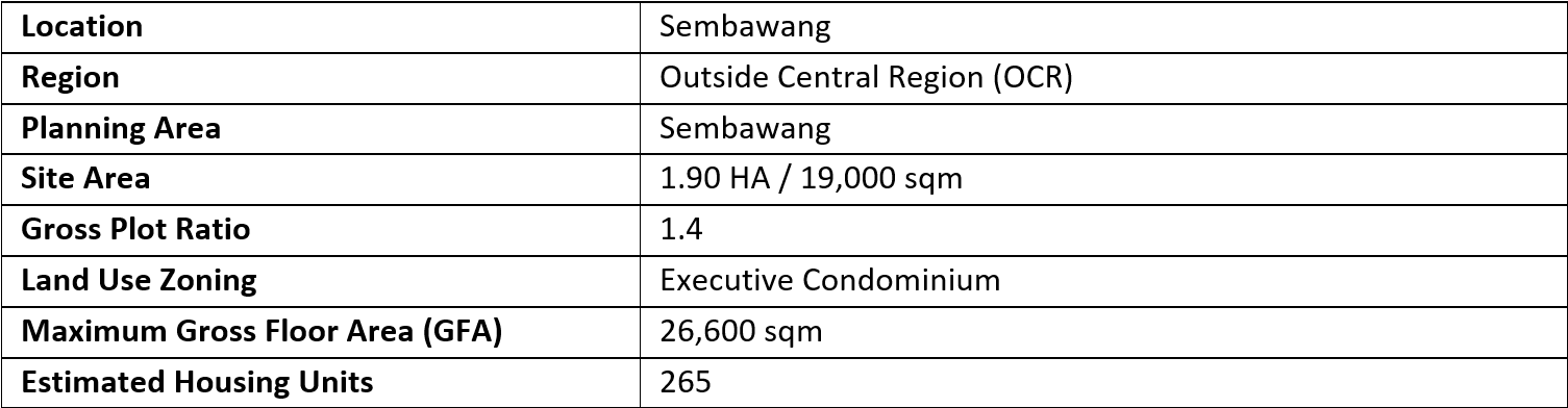The tender for the Executive Condominium (EC) Government Land Sale (GLS) site at Sembawang Road closed on 11 September 2025. In total, the site drew interest from four bidders, with the top bid of $197.8 million (or $692 psf ppr) submitted by Oriental Pacific Development Pte. Ltd.