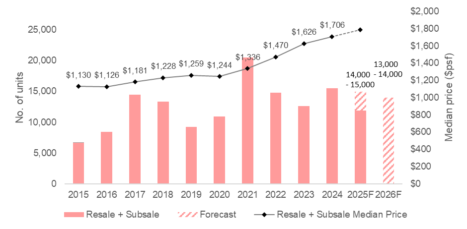 Despite these challenges, new home sales reached a peak not seen since 2021, surpassing 10,000 units in the first 11 months of 2025. Secondary transactions, including resale and subsale transactions, remained steady at 11,825 even amid a rise in new home transactions.