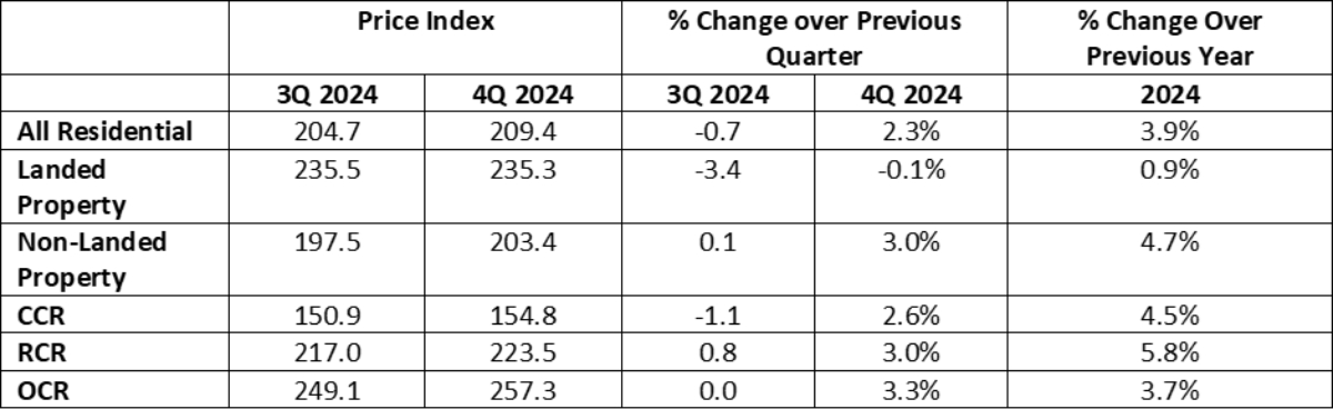 Table 1: Change in URA Private Property Price Indexes for 3Q 2024 and 4Q 2024