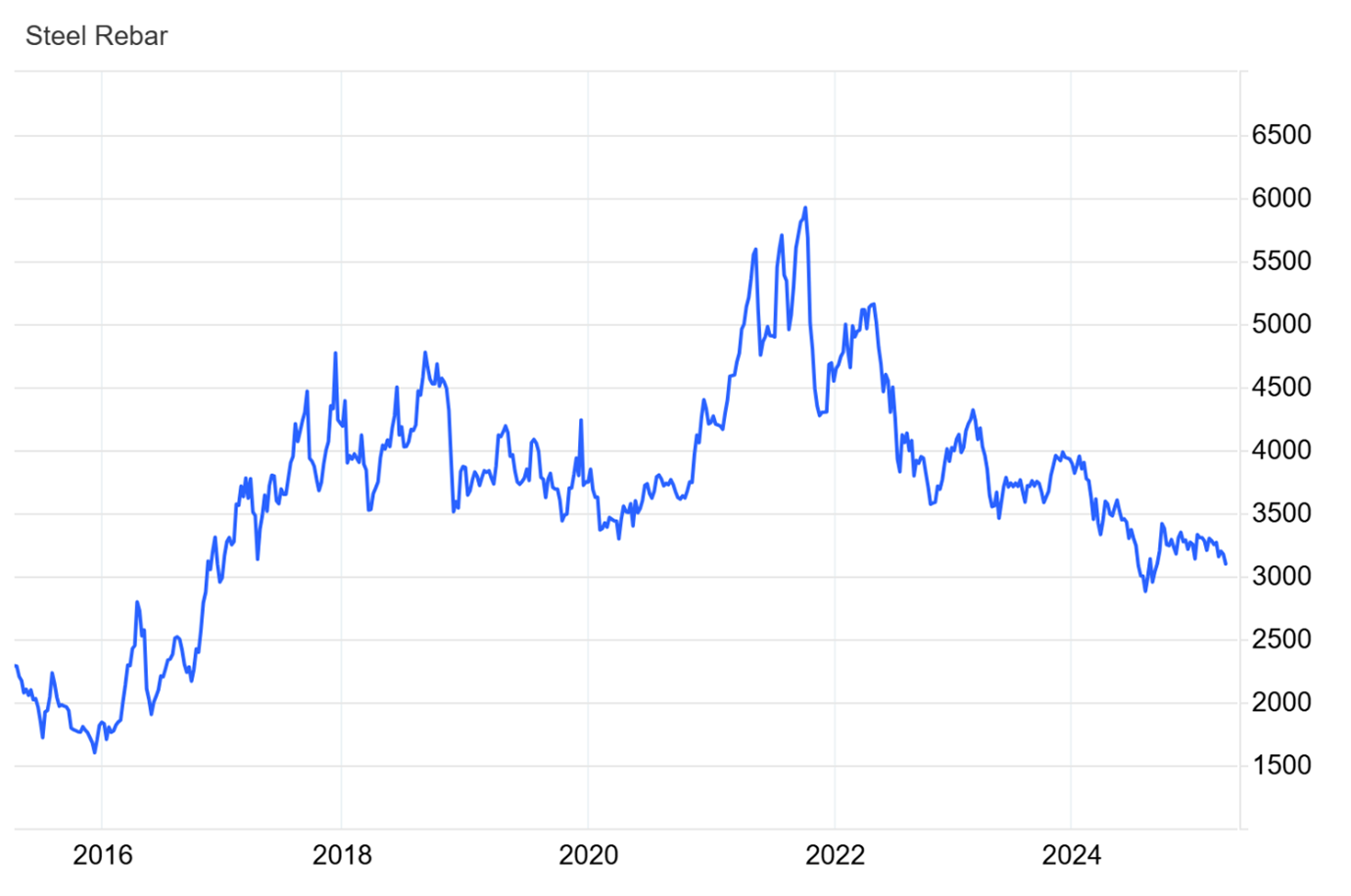 The region may face significant deflationary pressures if China decides to divert its export surpluses and flood the market with cheaper exports. Specific to the construction sector, the slowdown in China’s real estate market has led to weaker domestic demand and softer prices for steel rebar. The 25% US import tariffs are a double whammy on steel demand and could further dampen export demand for Chinese producers.