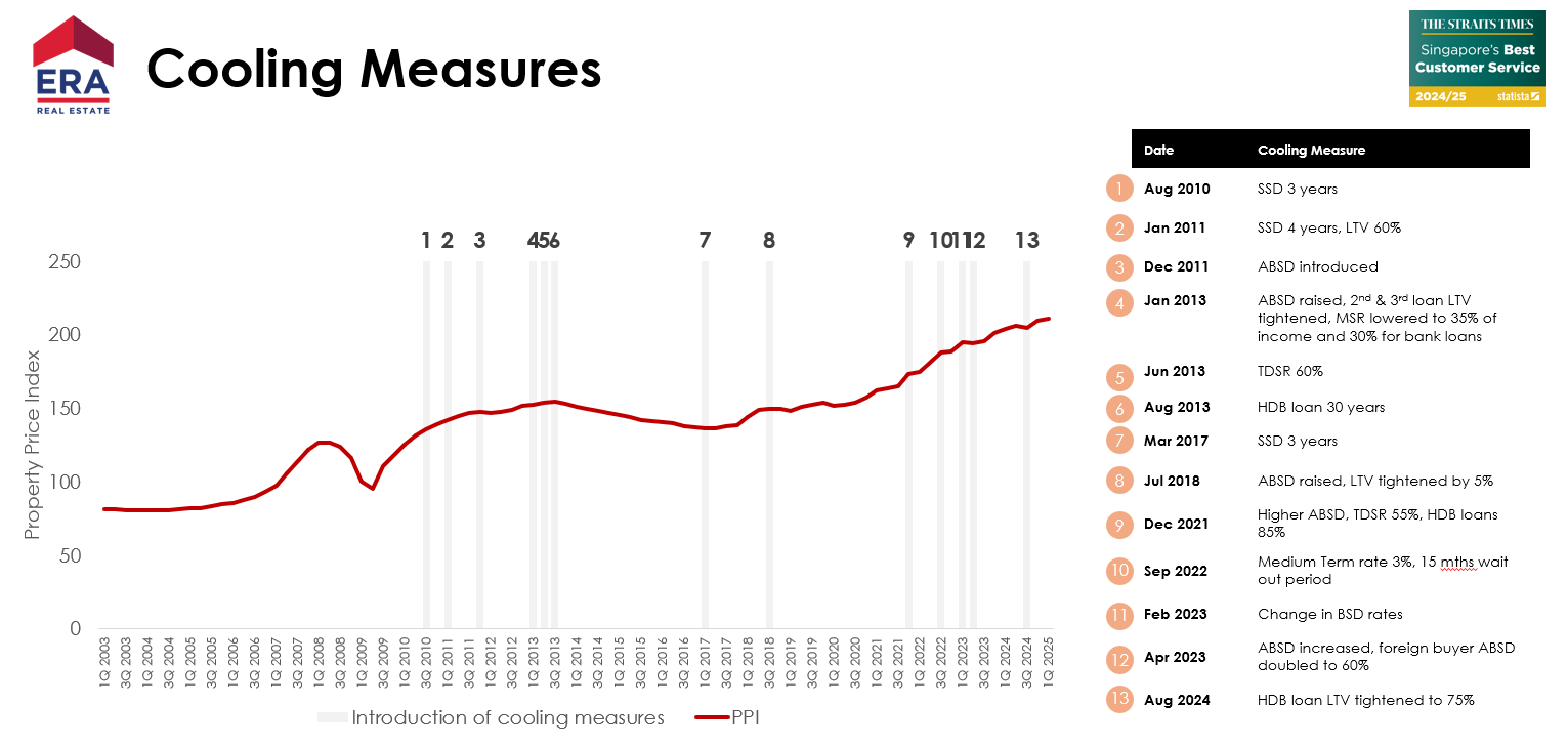 Between 2010 and 2024, the Singapore government introduced 13 rounds of cooling measures aimed at maintaining a stable residential market and ensuring sustainable price growth.